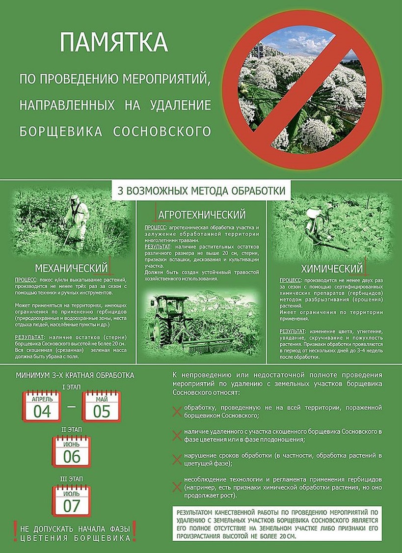 В ходе мероприятий, направленных на ликвидацию и предотвращение массового распространения на территории городского округа Подольск сорного растения — борщевика Сосновского — администрация городского округа Подольск призывает собственников, арендаторов земельных участков использовать земельные участки в соответствии с установленным видом разрешенного использования и не допускать начала фазы цветения борщевика, своевременно приступать к обработке участков с применением различных методов. За непроведение мероприятий по удалению с земельных участков борщевика Сосновского законом Московской области от 04.05.2016 № 37/2016-ОЗ «Кодекс Московской области об административных правонарушениях» предусмотрена административная ответственность. Штраф составляет: на граждан в размере от двух тысяч до пяти тысяч рублей; на юридических лиц — от ста пятидесяти тысяч до одного миллиона рублей. Источник и фото: комитет имущественных и земельных отношений администрации г. о. Подольск