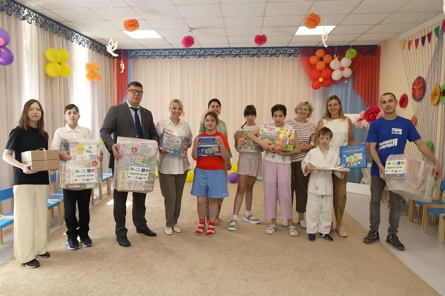 Он передал ребятам и их наставникам игровые наборы и мелки. Дети вместе с педагогами и волонтёром из молодой гвардии с удовольствием погрузились в мир развивающих игр.
