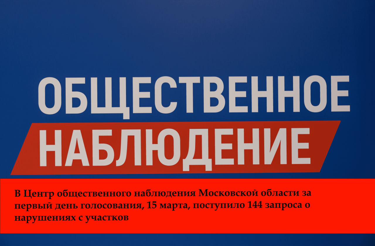 В Центр общественного наблюдения Московской области за первый день голосования, 15 марта, поступило 144 запроса о нарушениях с участков