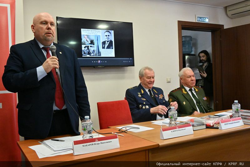 Член ЦК КПРФ, депутат Госдумы, генерал-лейтенант В.И. Соболев рассказал о том, как в короткие сроки Советскому Союзу удалось создать военно-промышленный потенциал, давший возможность стране вступить в борьбу с фашизмом и победить. Виктор Иванович отметил, что в годы либеральных реформ многие стратегические производства были утрачены, военная мощь страны была существенно ослаблена. Выступающий подчеркнул необходимость сегодня, перед лицом внешней угрозы, быстрыми темпами возродить военно-промышленный потенциал.