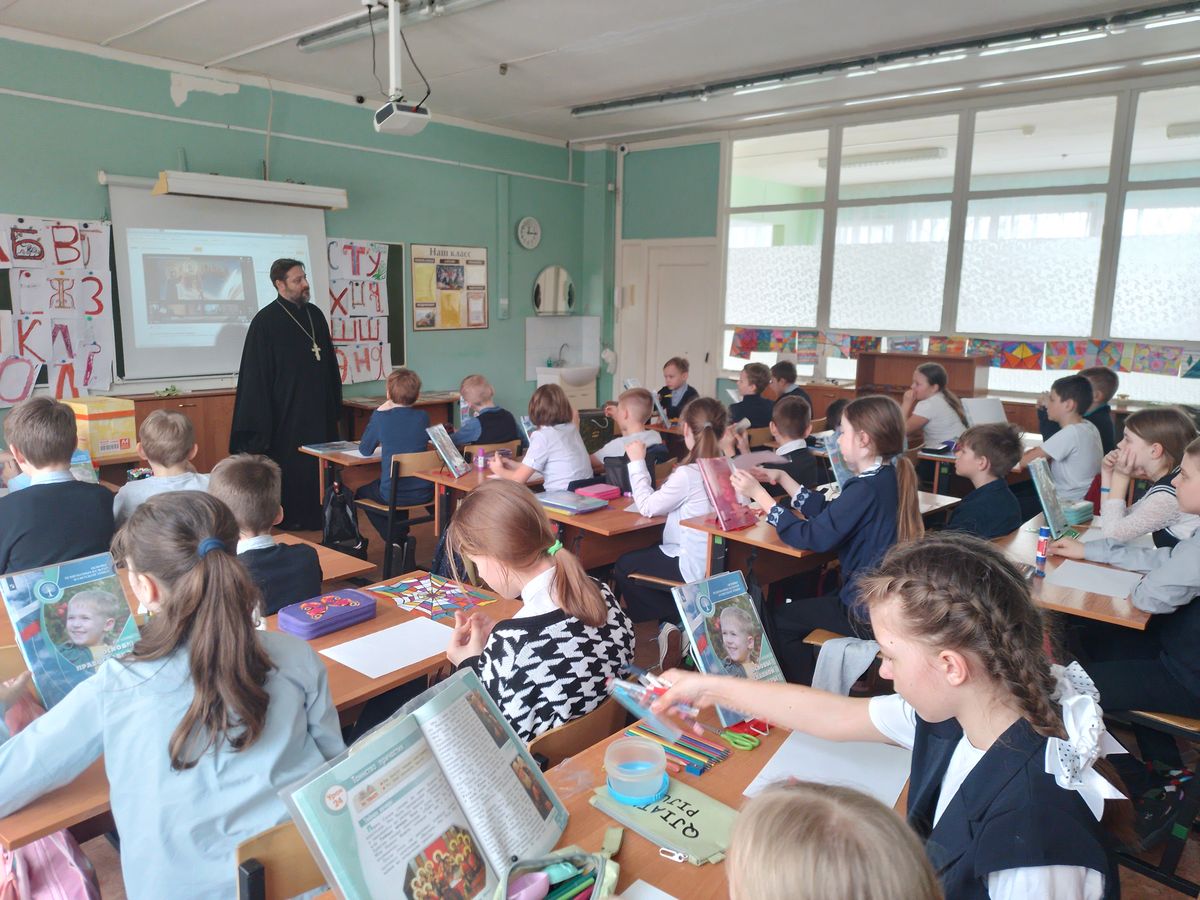 15 марта 2023 г. иерей Александр Леонтьев настоятель Троицкого храма в с. Саввино провел урок в Саввинской школе, посвященный Дню православной книги.