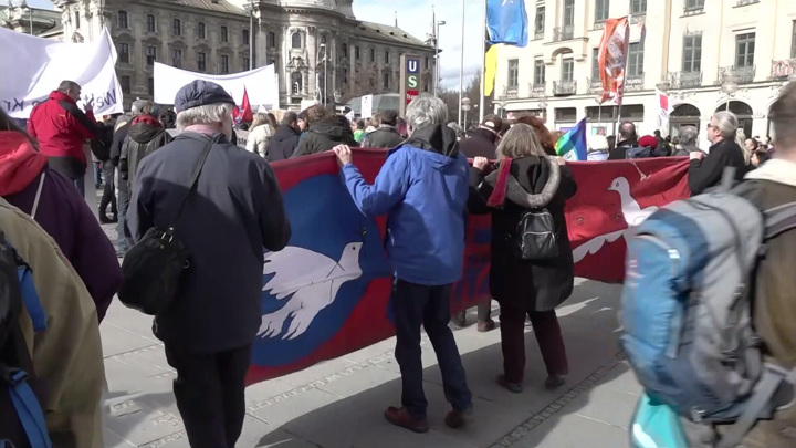 В этом году исполняется 40 лет так называемой "горячей осени 1983 года". Это когда на планы рейгановской администрации разместить в ФРГ крылатые ракеты "Томагавк" и ракеты средней дальности "Першинг-2" западные немцы ответили массовыми протестами. Ежедневно на улицы выходили до полумиллиона человек, и все равно ракеты поставили. Так и теперь: люди здесь, на Мариенплатц, и люди, сидящие в паре кварталов на Мюнхенской конференции, – это две параллельные реальности. Причем в той, где существуют западные политики, принято терять волю, когда речь заходит об интересах США.