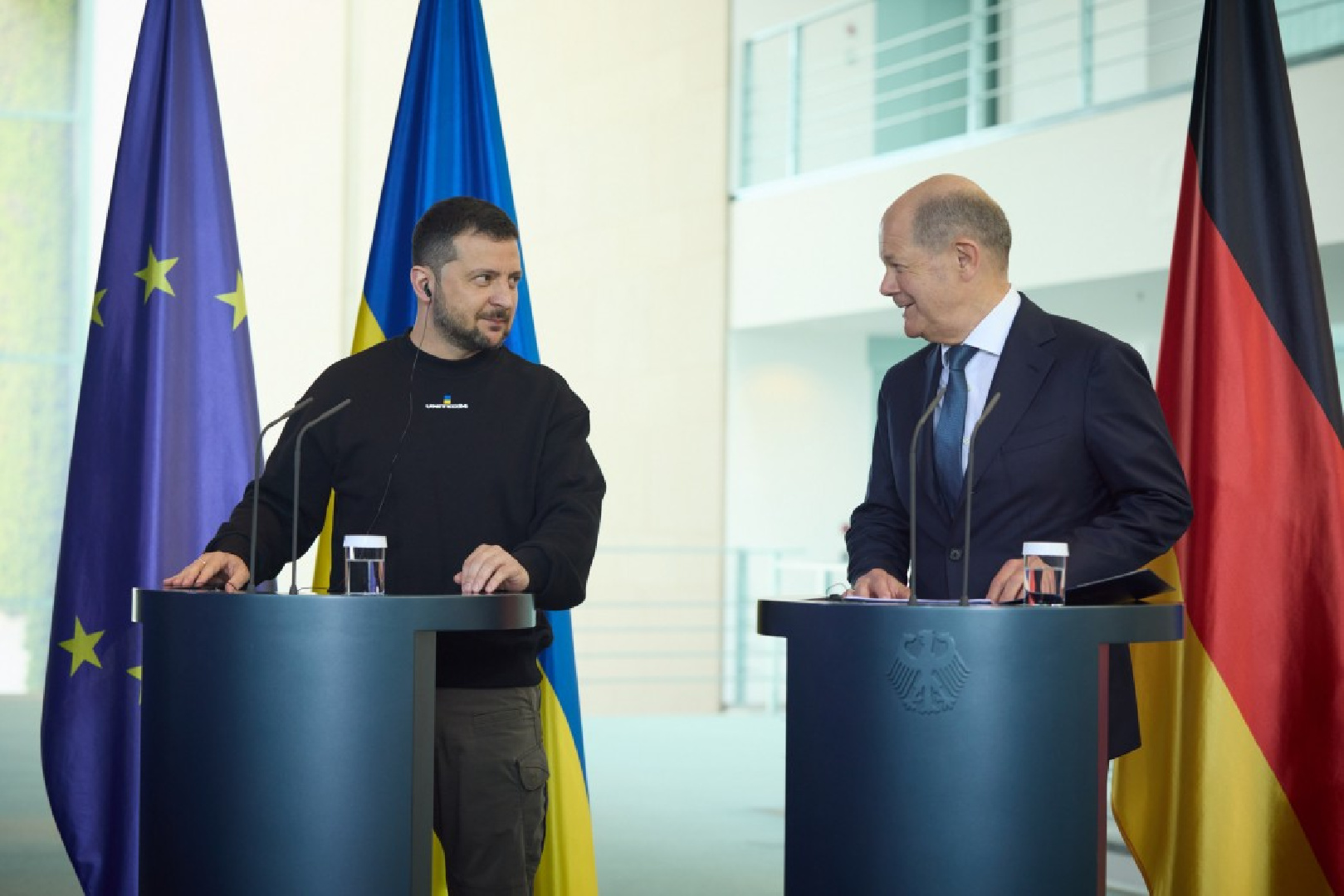 Канцлер ФРГ Олаф Шольц принял президента Украины Владимира Зеленского в Берлине с воинскими почестями Канцлер Германии Олаф Шольц принял у себя в ведомстве президента Украины Владимира Зеленского.