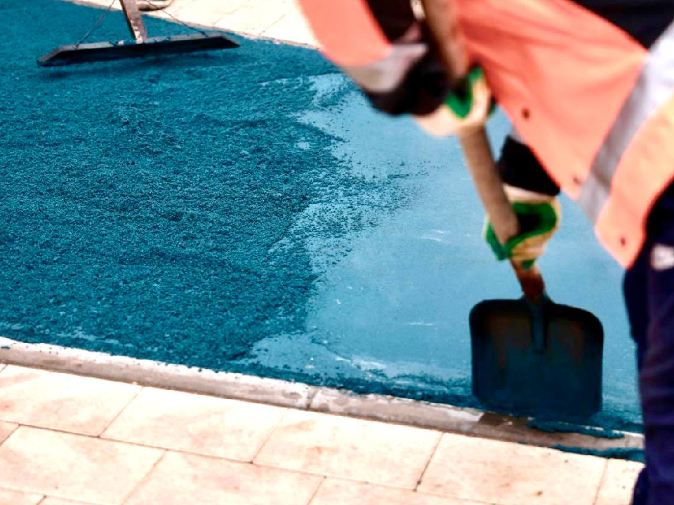 В Дубне укладывают синий асфальт для велодорожки