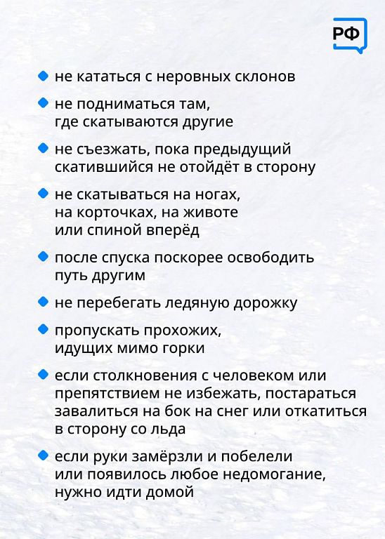 Кататься со снежных и ледяных горок — одно из любимых зимних развлечений у детей. Но веселье может закончиться походом в травмпункт, если забыть о безопасности. В первую очередь позаботиться о ней должны родители. Вот основные правила.