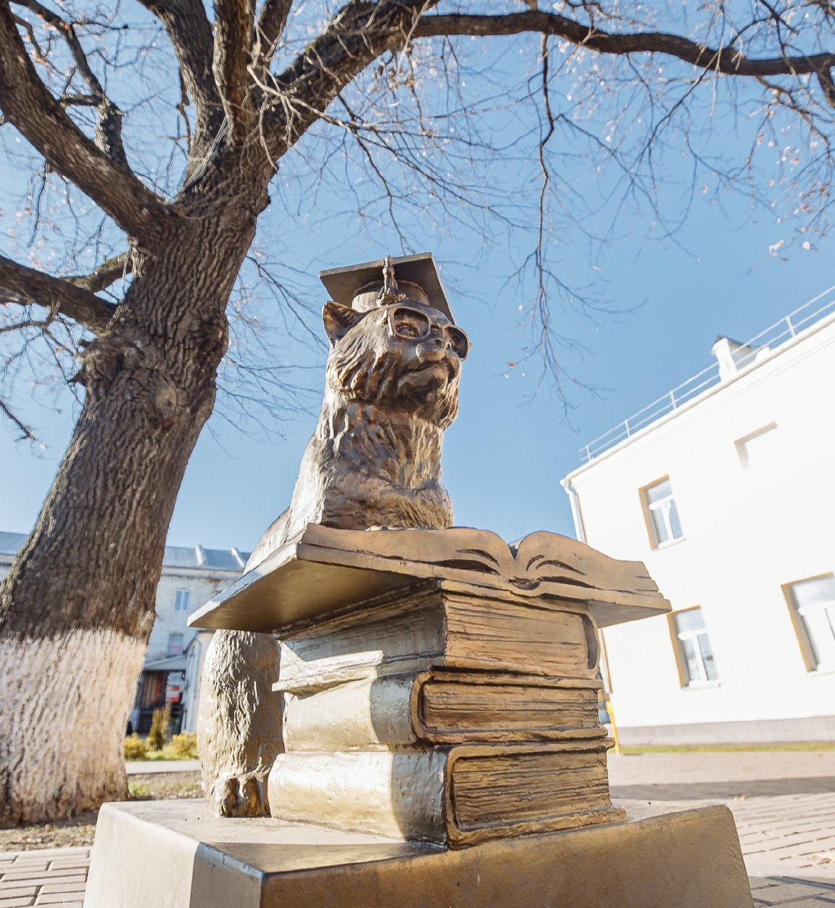 Он отлит на заводе в Санкт-Петербурге по спецзаказу. Рядом с ним установили лавочку. А в городе появилась традиция — погладить на удачу кота.