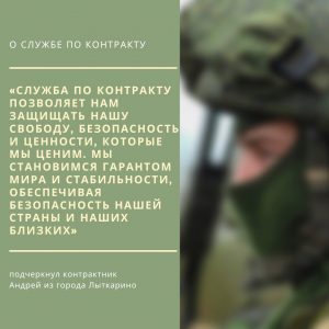 В регионе с мая месяца работает Московский областной пункт отбора на военную службу по контракту. В базирующемся в Балашихе комплексе созданы все условия для прохождения медкомиссии, оформления документов, подготовки, комфортного проживания, есть возможность проконсультироваться с юристом, нотариусом, представителями банков, выдаётся необходимая экипировка. Процесс заключения контракта – поэтапный, прежде всего потребуется подать документы. Затем обязательно пройти собеседование у психолога и медицинский осмотр. Контракт подписывается на 1, 3 или 5 лет, после чего доброволец получает предписание и направляется к месту несения службы. «Служба по контракту позволяет нам защищать нашу свободу, безопасность и ценности, которые мы ценим. Мы становимся гарантом мира и стабильности, обеспечивая безопасность нашей страны и наших близких», – подчеркнул контрактник Андрей из города Лыткарино. В комплексе созданы комфортные бытовые условия, обеспечено трёхразовое питание, обустроены учебные классы, спортзал, на территории – спортивный городок. Для заключивших контракт, а также их родных предусмотрены льготы и выплаты. В частности, предоставляются кредитные каникулы, действует освобождение от уплаты налога на имущество, рабочее место – сохраняется. Детей зачисляют в садик вне очереди, обеспечивают бесплатными завтраками и обедами в школе, охватывают дополнительным образованием в кружках и секциях. Служба по контракту: Горячая линия: +7 (495) 990-77-77 Электронная почта: [email protected] Источники: Информационное агентство «Все новости Лыткарино» , Интернет-портал lytkarino.com