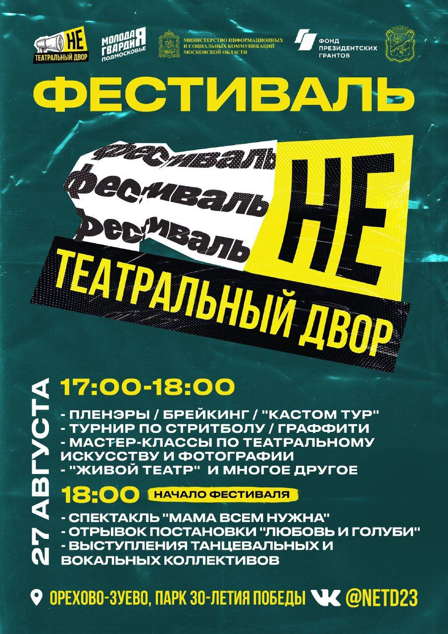 Фестиваль «НЕтеатральный двор» пройдёт 27 августа в Парке Победы — vk.com/netd23 .