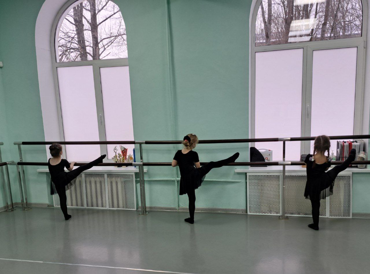 Ребята показали свои умения в партерной гимнастике и растяжке у станка под музыкальное сопровождение.
