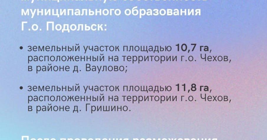 На основании договора пожертвования планируется к передаче из частной собственности более 40 га земли и в Подольске.