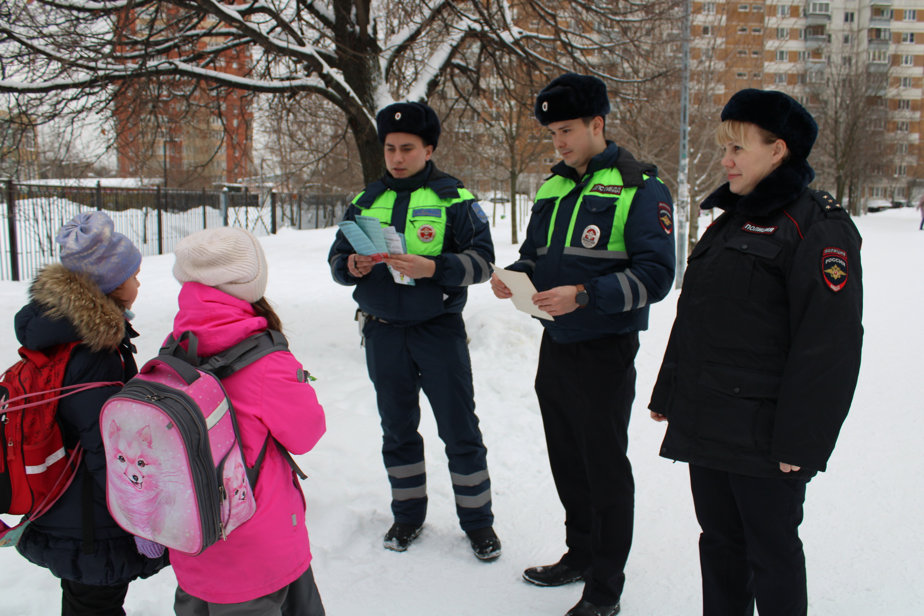 Полицейские рассказали ребятам об опасностях, подстерегающих детей в зимний период, и напомнили им о выборе безопасных мест для зимних игр. Все юные участники акции получили в подарок световозвращающие значки и памятки с рекомендациями безопасного участия детей в дорожно-транспортной среде.