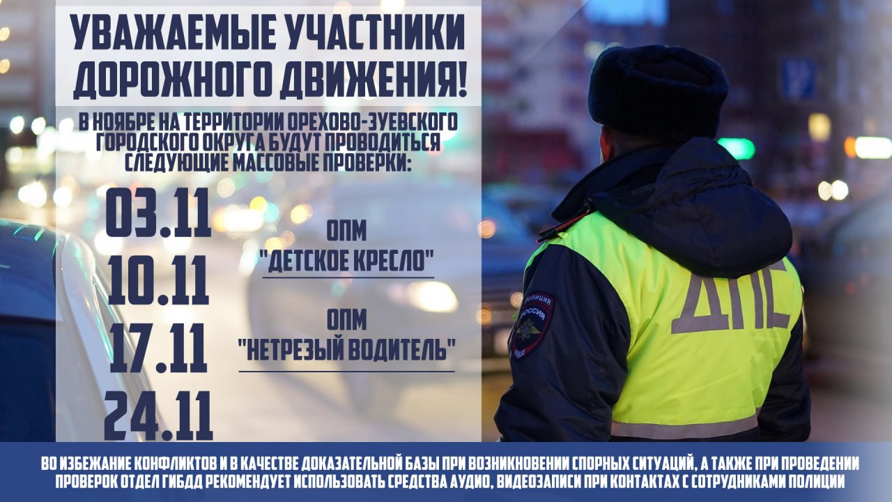 Рейды «Детское кресло» и «Нетрезвый водитель» пройдут в ноябре в Орехово-Зуевском округе
