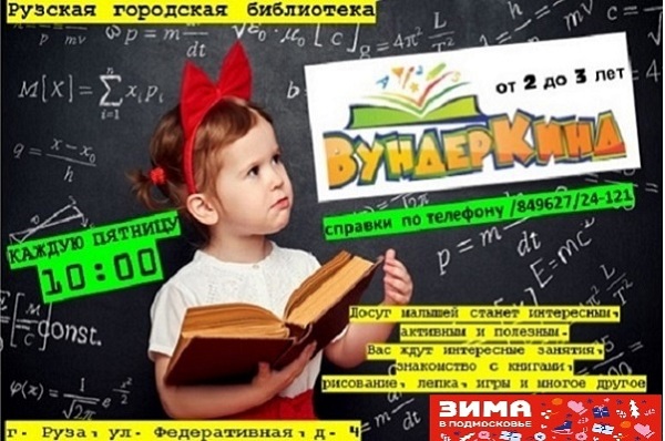 14 февраля в 10 часов в семейном клубе «Вундеркинд» Рузской городской библиотеки состоится комплексное развивающее занятие для интересного и активного времяпровождения малышей. Приглашаются родители с детьми 2-3 лет.