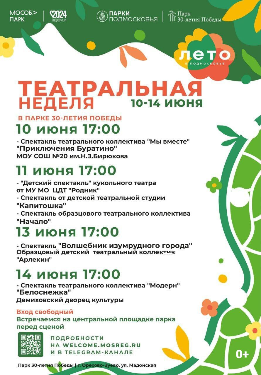 Театральная неделя пройдёт в Парке Победы г. Орехово-Зуево