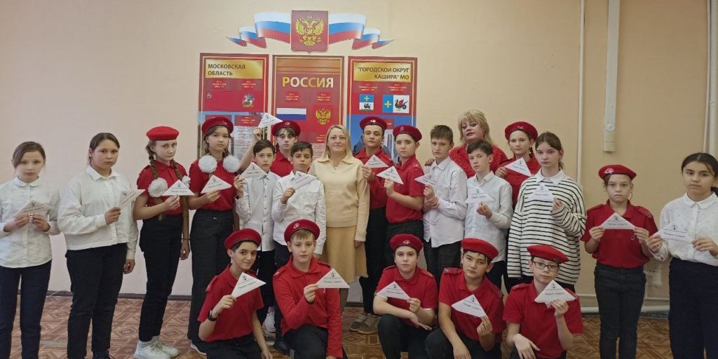 Руководитель КСВО городского округа Кашира Наталья Кульнева встретилась с юнармейцами и учениками 6-11 классов Тарасковской школы поселка Зендиково, где рассказала об участниках специальной военной операции и героях России.