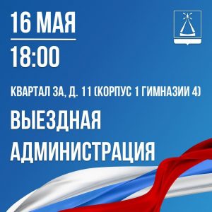 Приглашаем вас на открытый прием жителей в формате «Выездная Администрация», который пройдет 16 мая в 18.00 часов по адресу: квартал 3А, д. 11 (корпус 1 гимназии № 4).