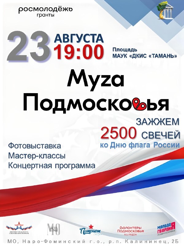 Встречаемся 23 августа в 19:00 в Наро-Фоминском городском округе в р-п Калининец на площади у Дворца культуры и спорта «Тамань».