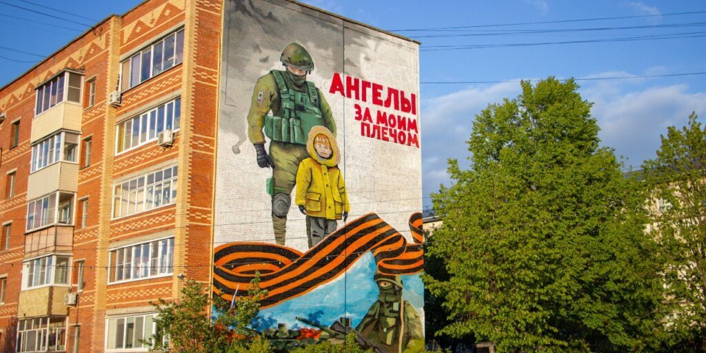 Для художника эта тема близка. Его друзья сейчас сражаются на фронте. Чтобы точнее перенести рисунок на полотно такого размера, художник использовал собственную технику разметки. Иван работал на автовышке в любую погоду, чтобы успеть ко Дню Победы. Идея мурала – сохранить память о защитниках Отечества.