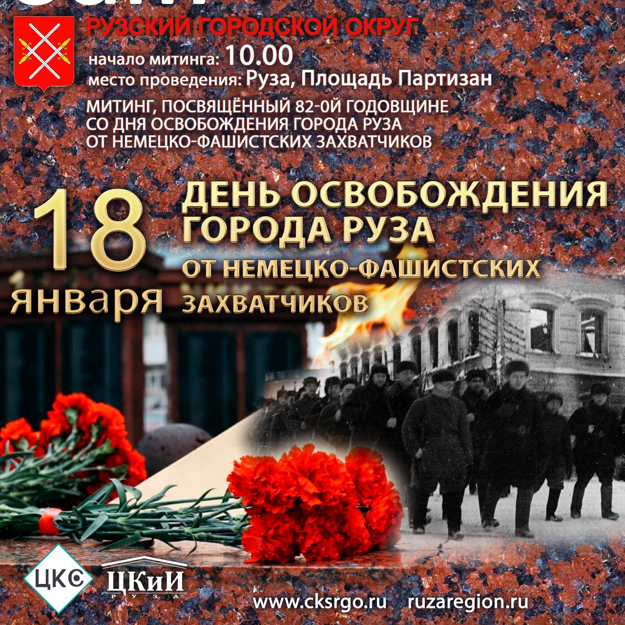 18 января в Рузе на площади Партизан состоится торжественный митинг, посвященный 82-й годовщине освобождения города от немецко-фашистских захватчиков.