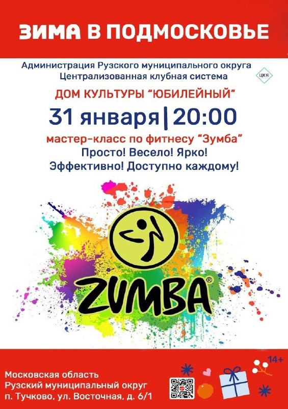Дом культуры «Юбилейный» приглашает всех желающих на мастер-класс по фитнессу «Зумба» 31 января в 20.00. Вас ждет танцевальная программа, основанная на динамичных движениях под энергичную музыку. Она совмещает в себе элементы множества популярных латинских, европейских, азиатских и американских танцев: сальсы, регеттона, хип-хопа, румбы, самбы, ча-ча-ча, фламенко.