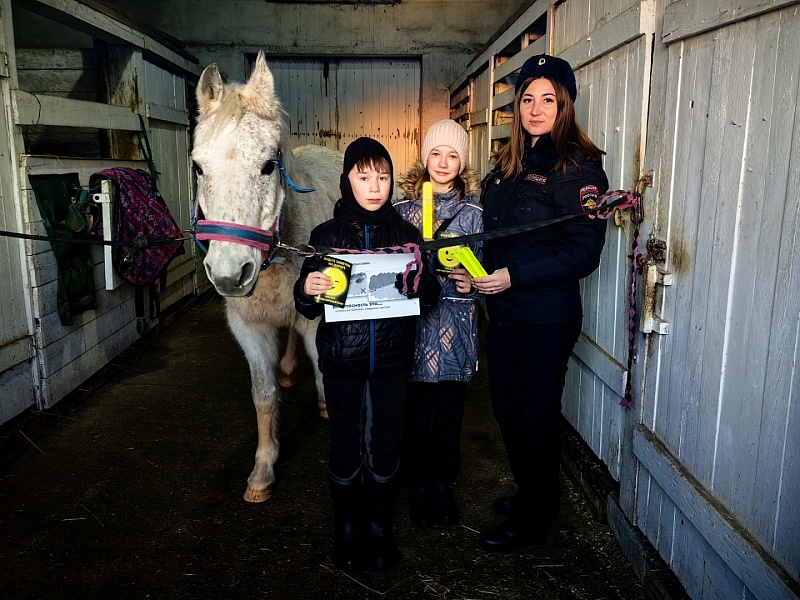 Сотрудница Госавтоинспекции УМВД России по г.о. Воскресенск в рамках комплексного мероприятия «Зимние каникулы» провела беседы с воспитанниками конного клуба, направленные на предупреждение детского дорожно-транспортного травматизма и популяризацию СВЭ.