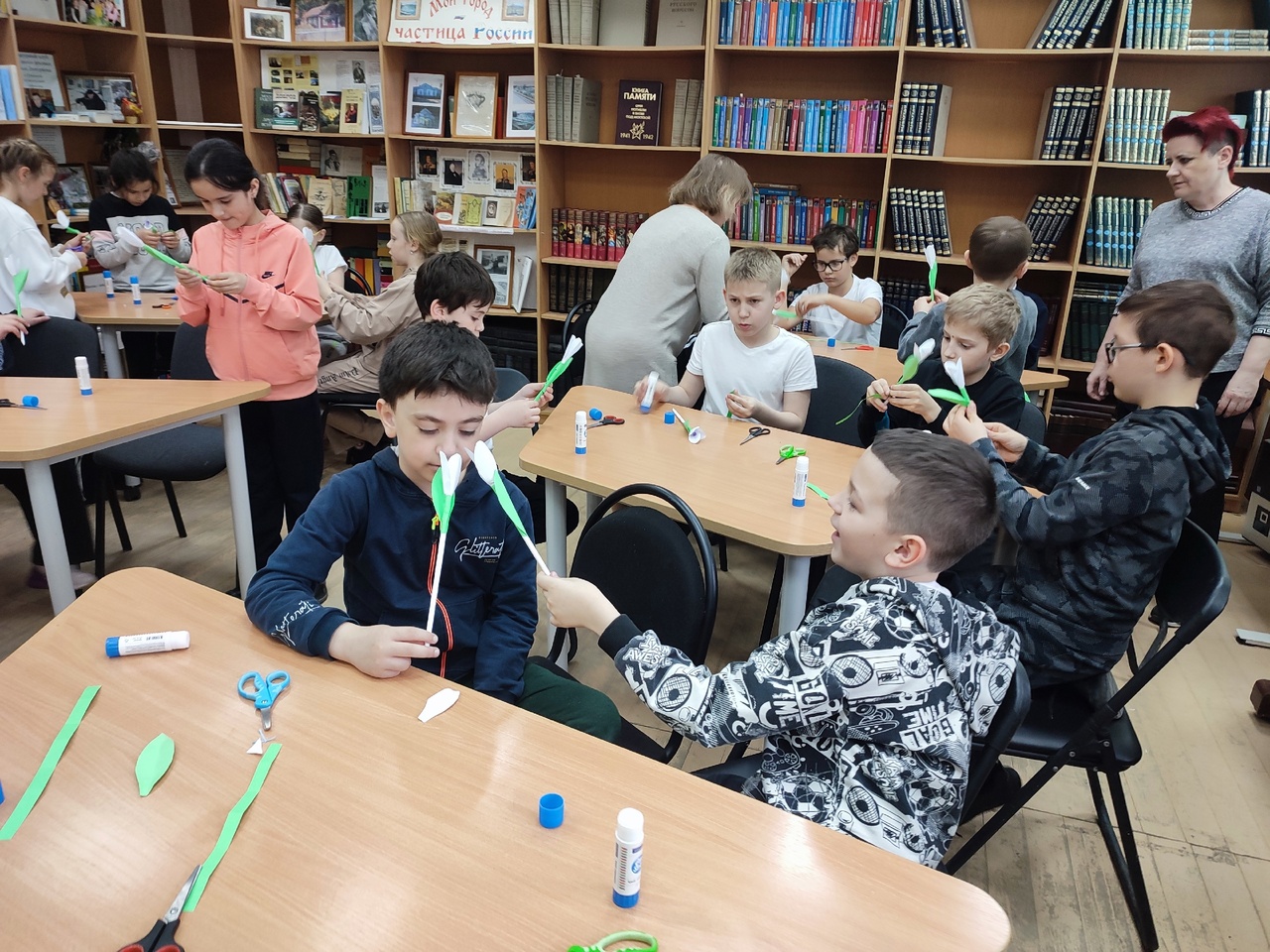 Библиотекарь предложила ребятам изготовить поделку, посвященную замечательному весеннему празднику – Дню подснежника.