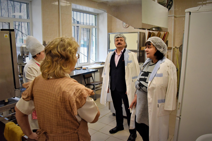 В рамках объездов по школам и дошкольным учреждениям, вместе с депутатом городского Совета депутатов Сергеем Акимовым она осмотрела пищеблок, групповые комнаты и спальни.