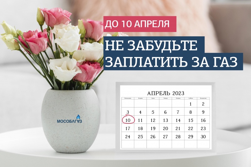 Мособлгаз напоминает жителям о своевременной оплате газоснабжения. Заплатить за потребленный в марте газ абонентам необходимо до 10 апреля.