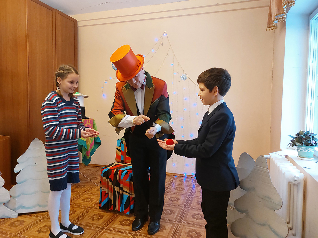 Настоятель храма священник Димитрий Выдумкин поздравил педагогов, родителей и учеников с Рождеством Христовым и сказал несколько слов о непреходящем смысле этого великого праздника. Затем учащиеся 2 и 4 классов пропели колядки и прочитали стихи, посвященные Рождеству Христову. Изюминкой праздника стало поздравление, подаренное зрителям постоянным прихожанином храма, режиссером Владимиром Беляевым. Владимир в этот волшебный праздник подарил всем особое волшебство - интереснейшие фокусы, в которых в качестве ассистентов принимали участие и учащиеся школы.