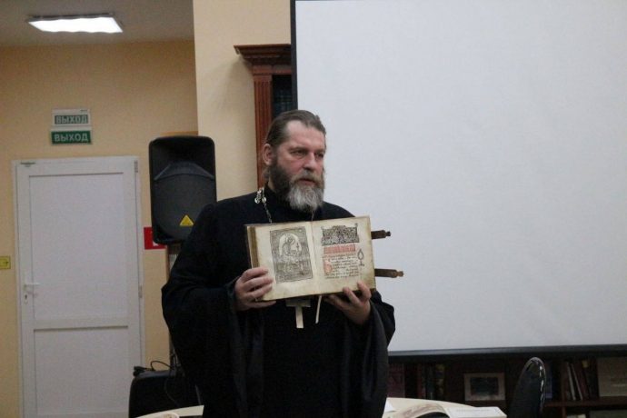 Отец Дмитрий рассказал студентам Истринского профессионального колледжа о начале книгопечатания на Руси. Поговорили и о первых печатных книгах.