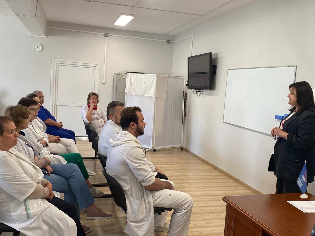 В поликлинике №7 муниципальный депутат, заведующая медицинским учреждением Ирина Спирина провела встречу с трудовым коллективом. В рамках проекта «Здоровое будущее» партии «Единая Россия» обсуди меры профилактики хронических респираторных заболеваний дыхательных путей в сезон простуд.