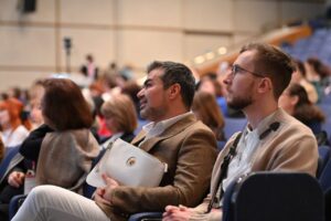 На фото — И.А.Клюшников с профессором кафедры акушерства и гинекологии с курсом перинатологии МИ РУДН М.Р.Оразовым случают спикеров конгресса.