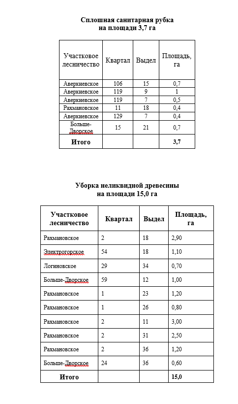 С целью предупреждения распространения вредных организмов в рамках выполнения Государственного задания от 27.12.2023 №30П-3393 будут проводиться санитарно-оздоровительные мероприятия в Аверкиевском, Рахмановском, Больше-Дворском, Электрогорском участковом лесничестве.