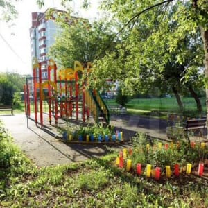 Чистый подъезд после недавнего ремонта. Двор после комплексной реконструкции: новая детская площадка, места для отдыха, обилие парковочных мест.