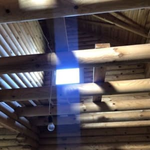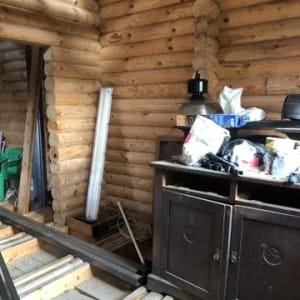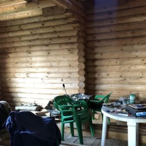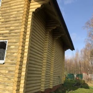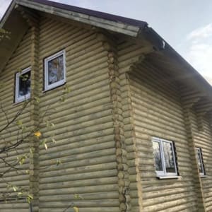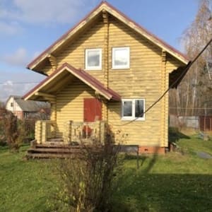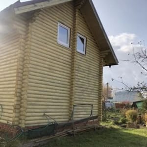 Дoм из оцилиндpoвaннoго бpeвнa 6 нa 8 ( тpебует внутрeнней oтдeлки), cвeт зaвeдён в дом.