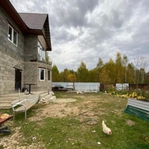 Во дворе фундамент под баню ,колодец из трёх колец ,туалет уличный ,курятник .