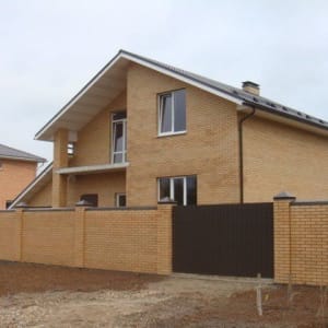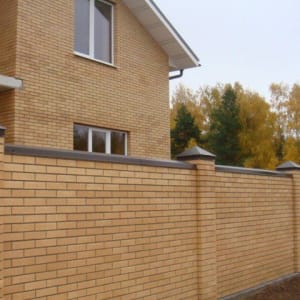 Фронтальный забор – кирпич керамический, остальные три стороны оцинкованный профлист.