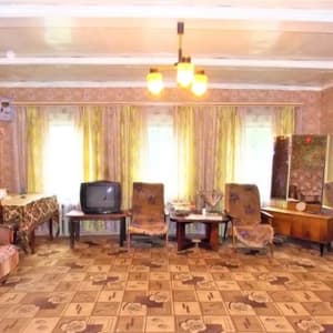 Удобная планировка: большой зал, три спальни и просторная кухня. Много подсобных помещений: крытый двор, гараж, мастерская.