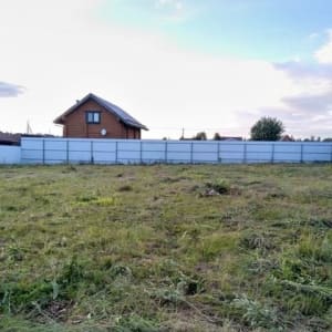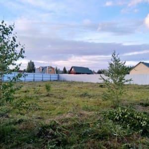 Земельный участок ровной формы, без построек, внутри охраняемой территории, электричество 10 кВт, забор по трем сторонам.